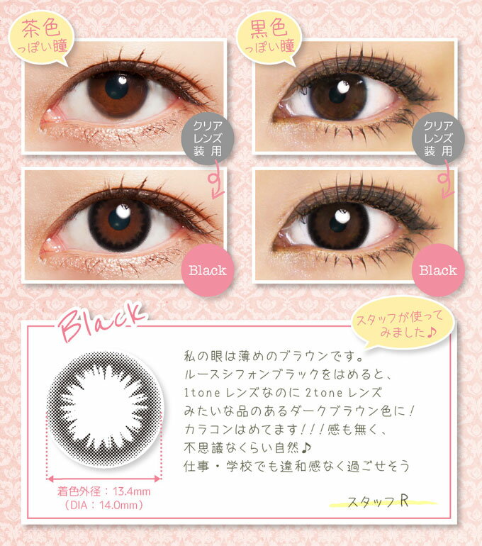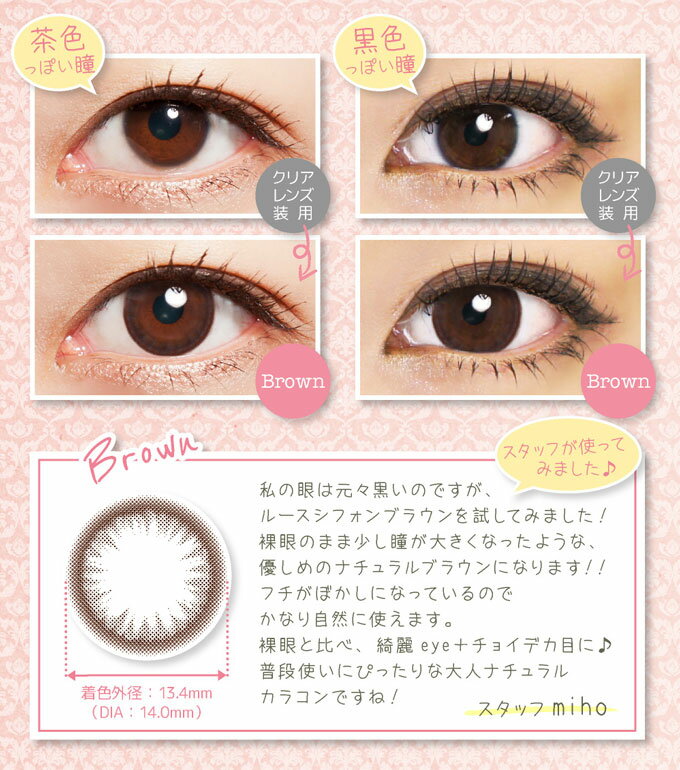関連キーワード ドリコン ルースシフォン ゼル 2ウィーク UVモイスト 6枚入 カラコン カラーコンタクト カラーコンタクトレンズ 2week 2週間交換 二週間使い捨て SHO-BI Labo株式会社 株式会社1-D ROYAL サークルレンズ RuthChiffon ZERU UVカット 紫外線 うるおい ナチュラル オトナカラコン 大人ナチュラル 自然 ブラウン ブラック オリーブブラウン キャメルブラウンルースシフォン ゼル 2ウィーク UVモイスト 内容:1箱6枚入 装用期間:2週間交換 DIA(レンズ直径):14.0mm、14.2mm(キャメルブラウンのみ) BC(ベースカーブ):8.6mm 着色直径:13.4mm、13.6mm(キャメルブラウンのみ) 含水率:38.0% カラー:ブラウン、ブラック、オリーブブラウン、キャメルブラウン PWR(パワー):±0.00、-0.50~-6.00(0.25step)、-6.50~-10.00(0.50step) 高度管理医療機器承認番号:30100BZX00026A01 広告文責:インターオプチカル(TEL:0120-355-702) 製造販売元:SHO-BI Labo株式会社 発売元:株式会社1-D ROYAL 区分:高度管理医療機器 製造国:台湾 ※当店は改正薬事法に基づいた法令遵守体制を実践しています。