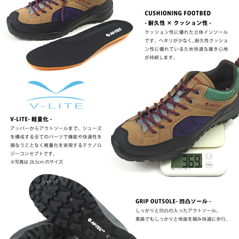 メーカー希望小売価格はメーカーサイトに基づいて掲載していますブランド ハイテック HI-TEC 品名 AORAKI WP 品番 HT HKU11 カラー BLACK BRW/GREEN L.GRAY BEG/BLU/GRN CAMEL GRAY BLU/GRAY BEG/PURPLE サイズ 22.0cm 22.5cm 23.0cm 23.5cm 24.0cm 24.5cm 25.0cm 25.5cm 26.0cm 26.5cm 27.0cm 27.5cm 28.0cm 29.0cm 30.0cmメーカー表記:2E(標準) ▼サイズについて [計測サイズ26.5cm] 重さ:約 365g (片足分) ヒール高:約 4.5cm 素材 アッパー:合成皮革/合成繊維ソール:圧縮EVA/耐摩耗ゴム 生産国 CHINA 特徴 イギリス発祥のアウトドアブランド「HI-TEC(ハイテック)」のアウトドアスニーカー。