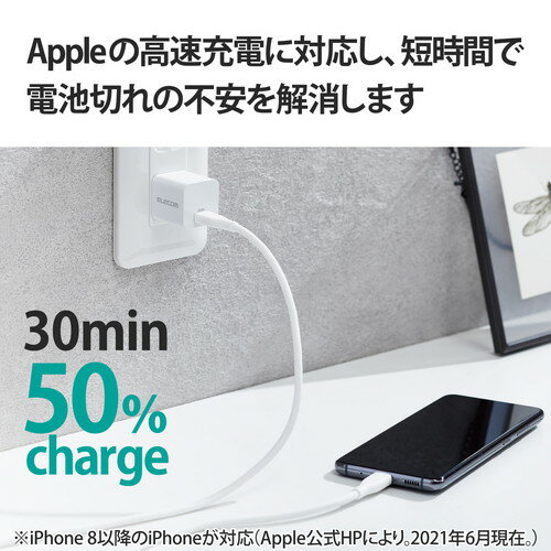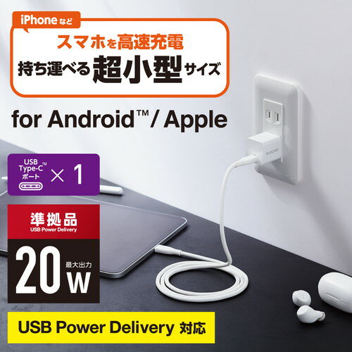 エレコム USB 充電器 PD対応 20W Type-C ×1ポート 小型 軽量 iPhone iPad ホワイト(MPA-ACCP28WH) メーカー在庫品