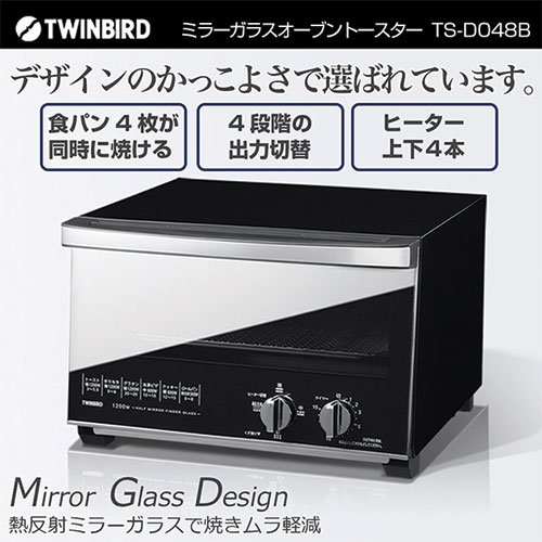 【在庫有】【正規品 保証付】ツインバード ミラーガラスオーブントースター ブラック TS-D048B【トースター ミラーガラス】