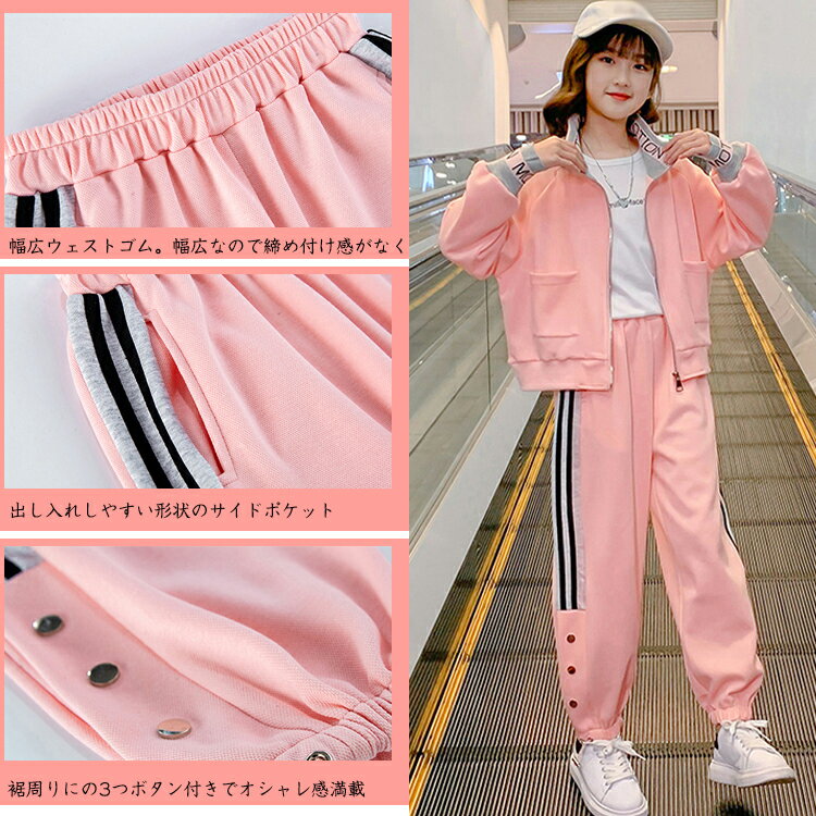ジャージ上下セット キッズ 女の子 セットアップ スウェット 長袖 春秋 秋着 ジュニア 2点セット 子供服 女の子 パーカー 長ズボン トレーナー スポーツウェア 運動着 可愛い おしゃれ アウター 体育 カジュアル HIPHOP ダンス 衣装 2色 120cm 130cm 140cm 150cm 160cm 170cm