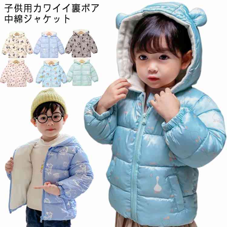 裏ボア 中綿ジャケット キッズ 中綿コート フード付き 子供服 女の子 男の子 裏ボアジャケット 軽量 防寒 防風 ベビーダウンジャケット 柄 可愛い 冬 通学 通園 90cm 100cm 110cm 120cm 130cm 140cm